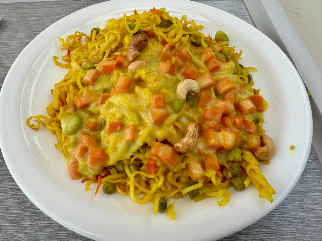 Angenehm ausgewogen – die Nudeln federleicht mit genau dem richtigen Biss, die Sauce schön cremig ohne zu kleben, und die Cashewkerne setzen punktuell knusprige Highlights.
